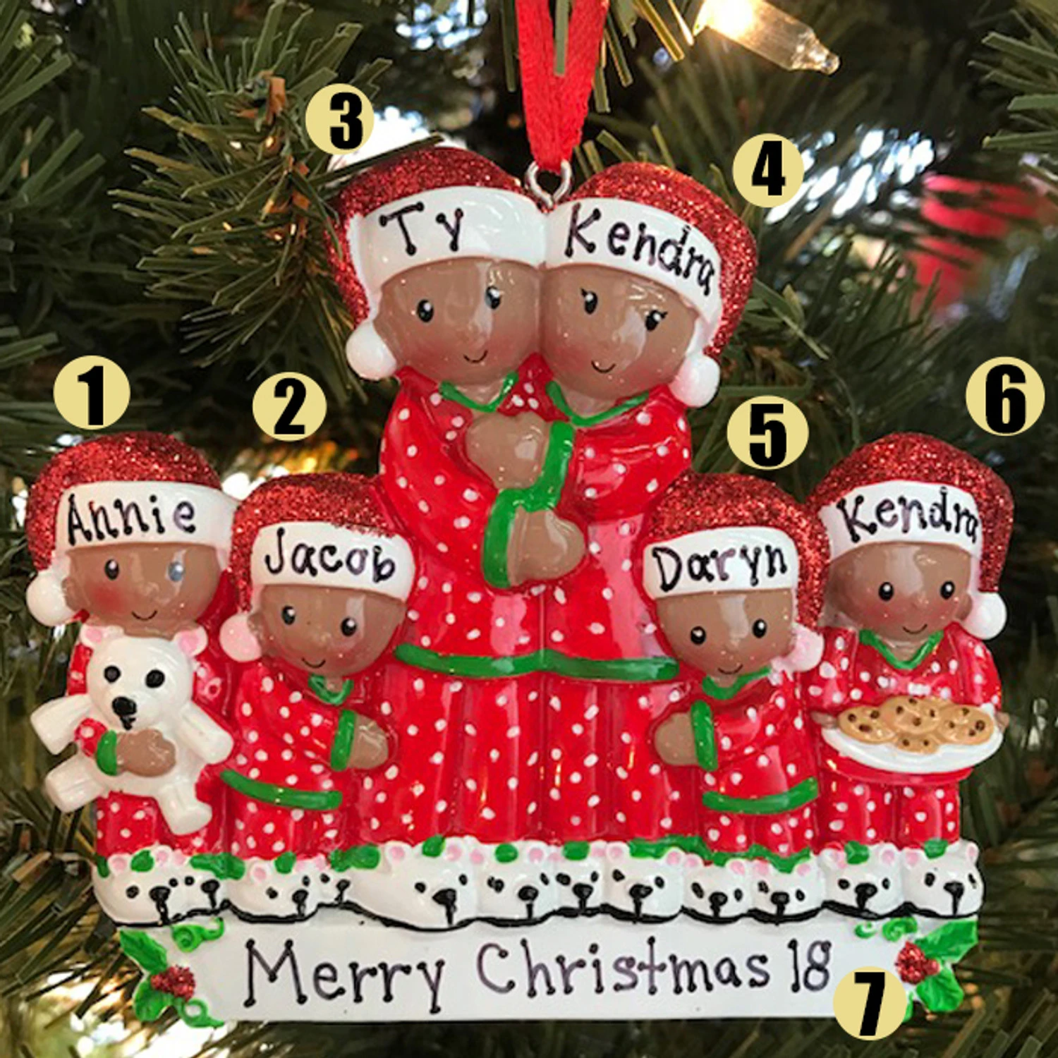 This family is getting ready to go to bed in their cozy red and green PJ’s and await Santa’s arrival! Get the hats personalized for a super fun gift! Made of resin. Dimensions: 4.25″ x 3.75″. Item #: AA1470-6