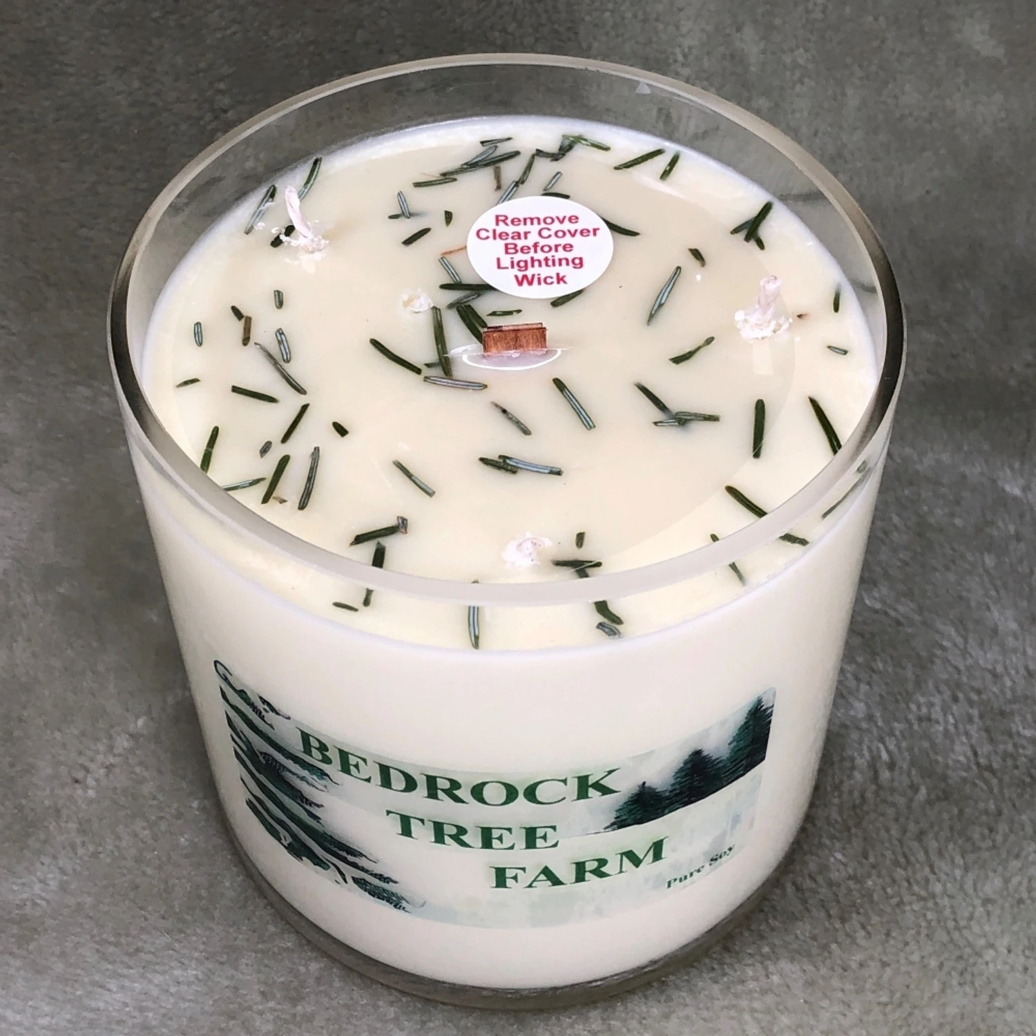 This amazing candle is sure to make your home smell like freshly cut Christmas trees! Every candle is hand poured and made with fir needles harvested from the Bedrock Christmas Tree Farm in Wakefield, Rhode Island! Each product is made with certified pure essential oils, phthalate free fragrance oils, and dyes that are formulated with eco-friendly ingredients. Made by Bedrock Tree Farm. Made of soy wax. Burn time of approximately 160 hours. Candle size 32 oz. Item #: V32NAT
