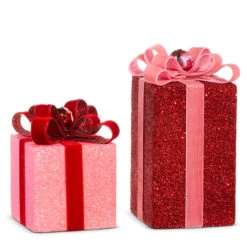 Raz Red And Pink Sparkle Christmas Package Decorations 4306657