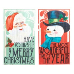 Raz Set Of 2 28″ Vintage Christmas Snowman And Santa Wood Wall Art Signs 4328035