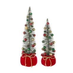 Raz Set Of 2 Green Bottle Brush Tree With Ornaments In Gold Urn 4215502