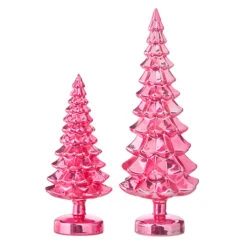 Raz Set Of 2 Pink Metallic Glass Christmas Tree Decoration 4222938