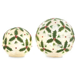 Raz Set Of 2 Holly Leaf Battery Operated Lighted Ball Glass Christmas Decoration 4322866