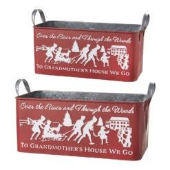 Raz Set Of 2 To Grandmother’s House We Go Embossed Metal Christmas Container 4159088