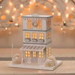 Bethany Lowe Metallic Gold, White, And Silver Glittered Christmas Buildings