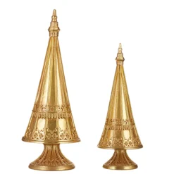 Raz Set Of 2 Crystal Jeweled Tree With Gold Glitter Christmas Decoration 4213523