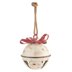 Raz 11″ Or 13.75″ White Glittered Jingle Bell With Red Bow Christmas Ornament