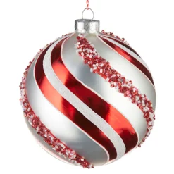 Raz 5″ Peppermint Swirl Glass Ball Christmas Ornament 4220960