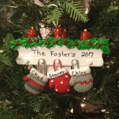 Family Of 3 Around The Christmas Tree Personalized Ornament OR1789-3