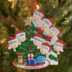 Family Of 7 Around The Christmas Tree Personalized Ornament OR1789-7