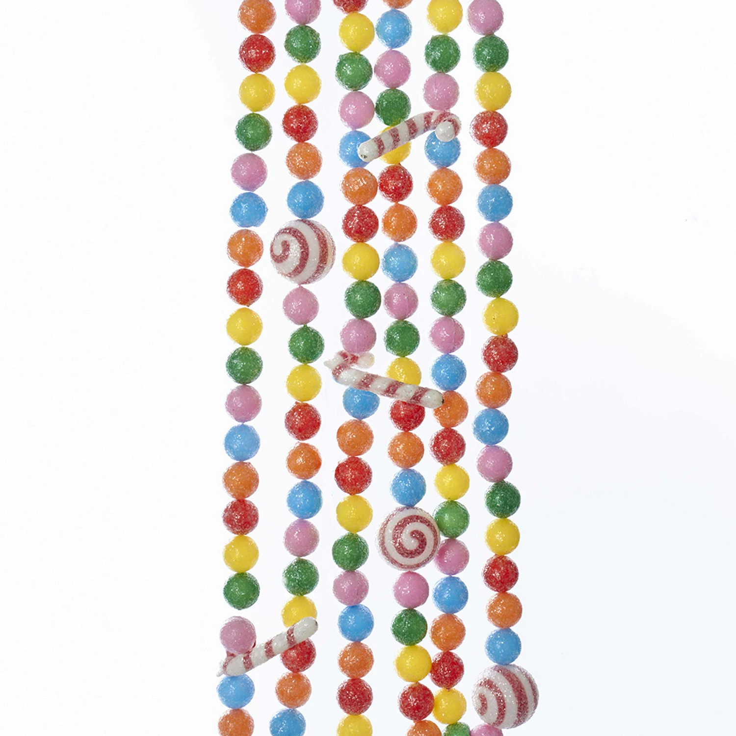 Turn your Christmas tree into candy-topia with this vibrant candy garland! With rainbow gumballs, tiny candy canes, and peppermints it’s sure to add just the right amount of sweetness to your tree! Each candy is lightly coated in fine iridescent glitter! You could add this to a greenery garland, or even a wreath! Fill an apothecary jar with the garland and place on the table or mantle for a fun look! Made of plastic. Dimensions: 6′ long. Item #: H2047