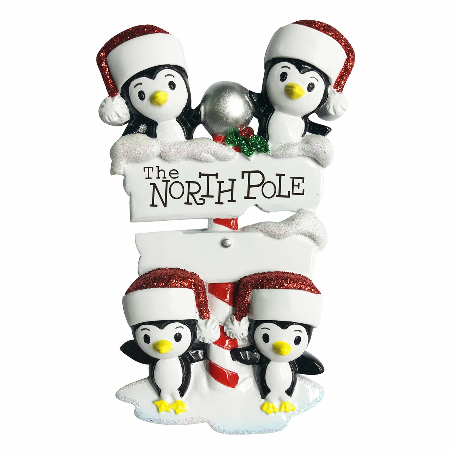 Penguin Family Of 4 At The North Pole Personalized Christmas Ornament OR1739-4