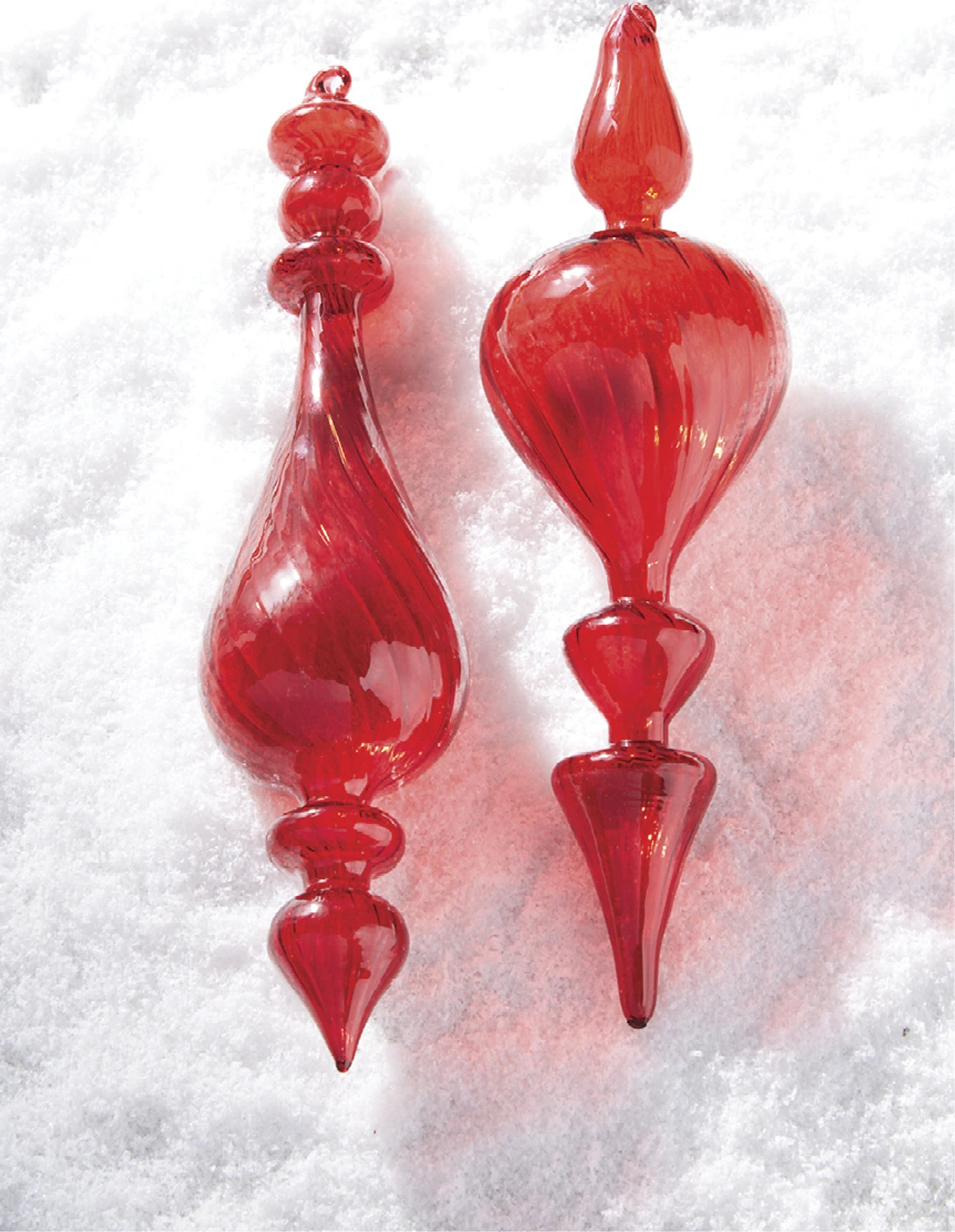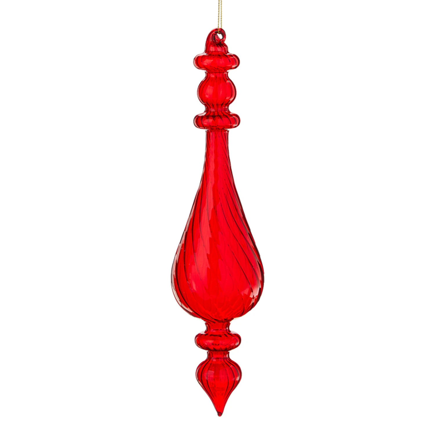 Add a bright pop of red to your Christmas tree with these lovely finials! Each one is made from red blown glass with a unique swirled texture! Each sold individually. Made by Raz Imports. Made of glass. Dimensions: 3″D x 11.25″H; 2.5″D x 11″H. Item #: 4122878