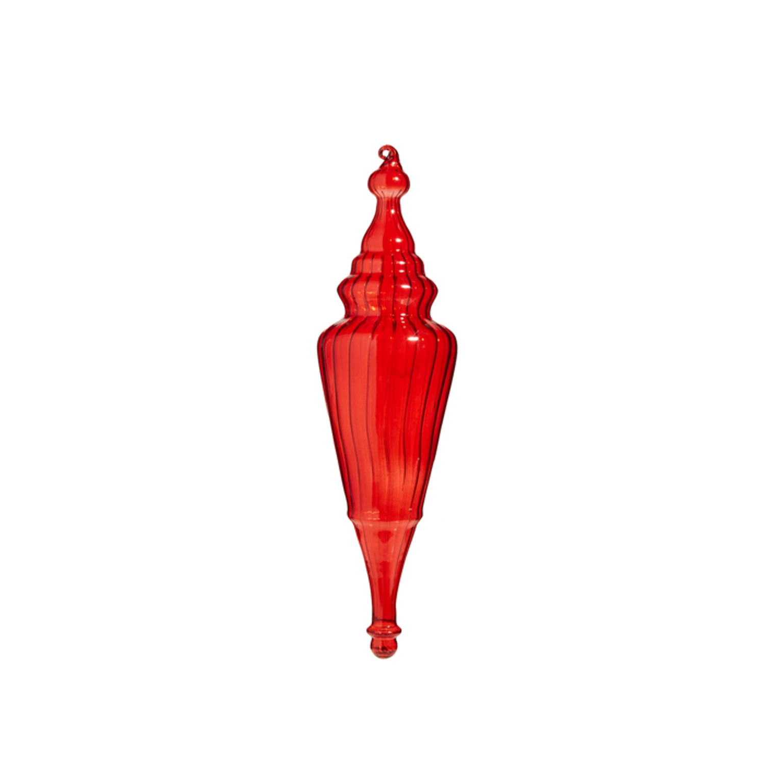 These stunning finials are large and in charge! Each one is made of bright red glass and is sure to look amazing on your tree with their unique finial shapes! Each sold individually OR as a set of 2. Each sold individually OR as a set of 2. Made by Raz Imports. Made of glass. Dimensions: 15.5″ tall. Item #: 4324500