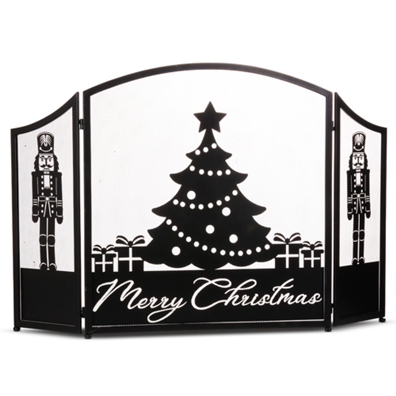 Spruce up your mantle and fireplace with one of our darling screens! It features a folding 3 panel fire screen with a decorated tree and presents scattered around with matching nutcrackers on either side. At the bottom on the middle piece it reads “Merry Christmas”! Made by Raz Imports. Made of iron. Dimensions: 48″ L X 1″ W X 30″ H. Item #: 4317034