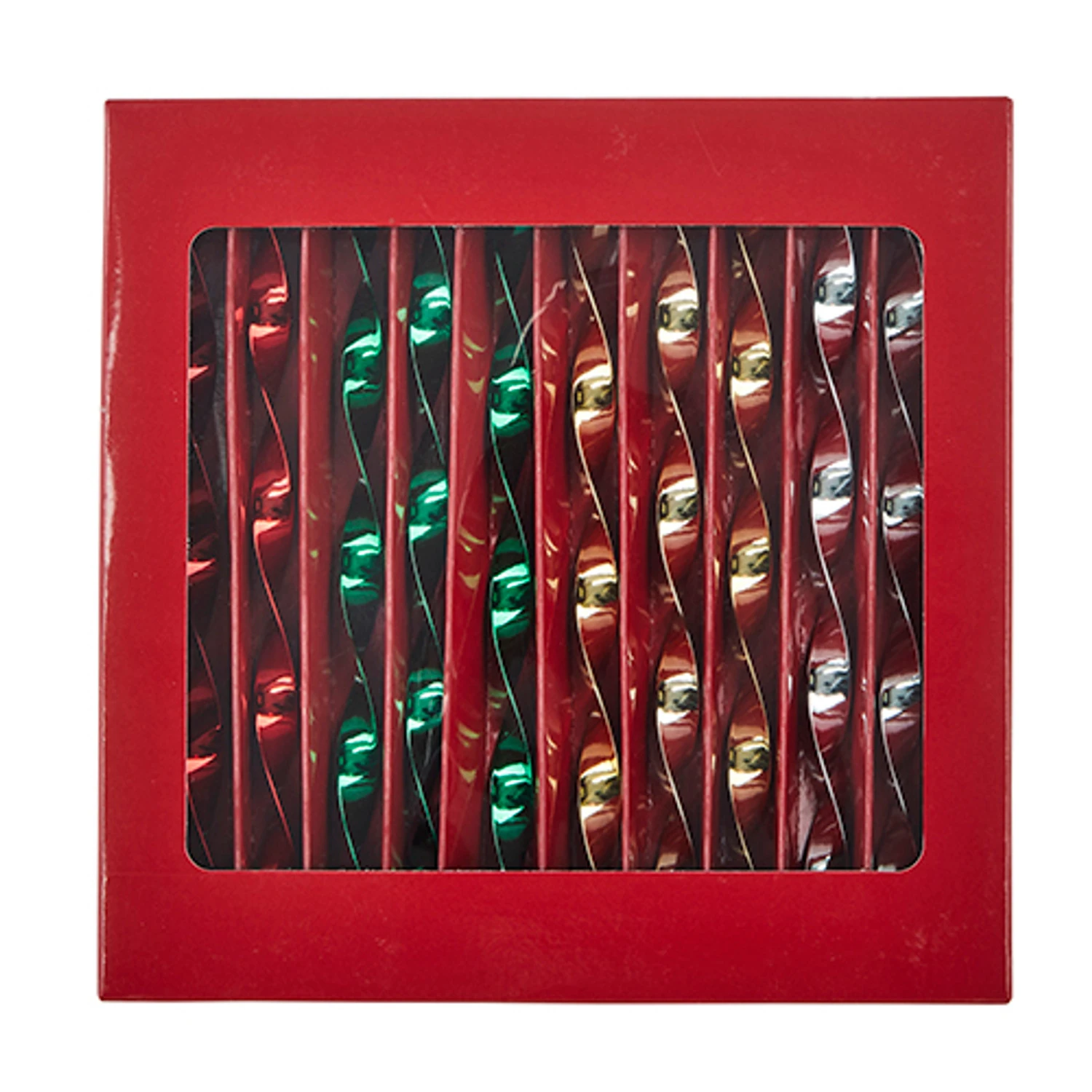 These gorgeous ornaments features red, green, gold and silver, the perfect colors for Christmas! Perfect to hang all around your tree, wreath, or along a garland! Comes in a box of 12. Made by Raz Imports. Made of metal. Dimensions: each ornament is 8″ tall. Item #: 4216403