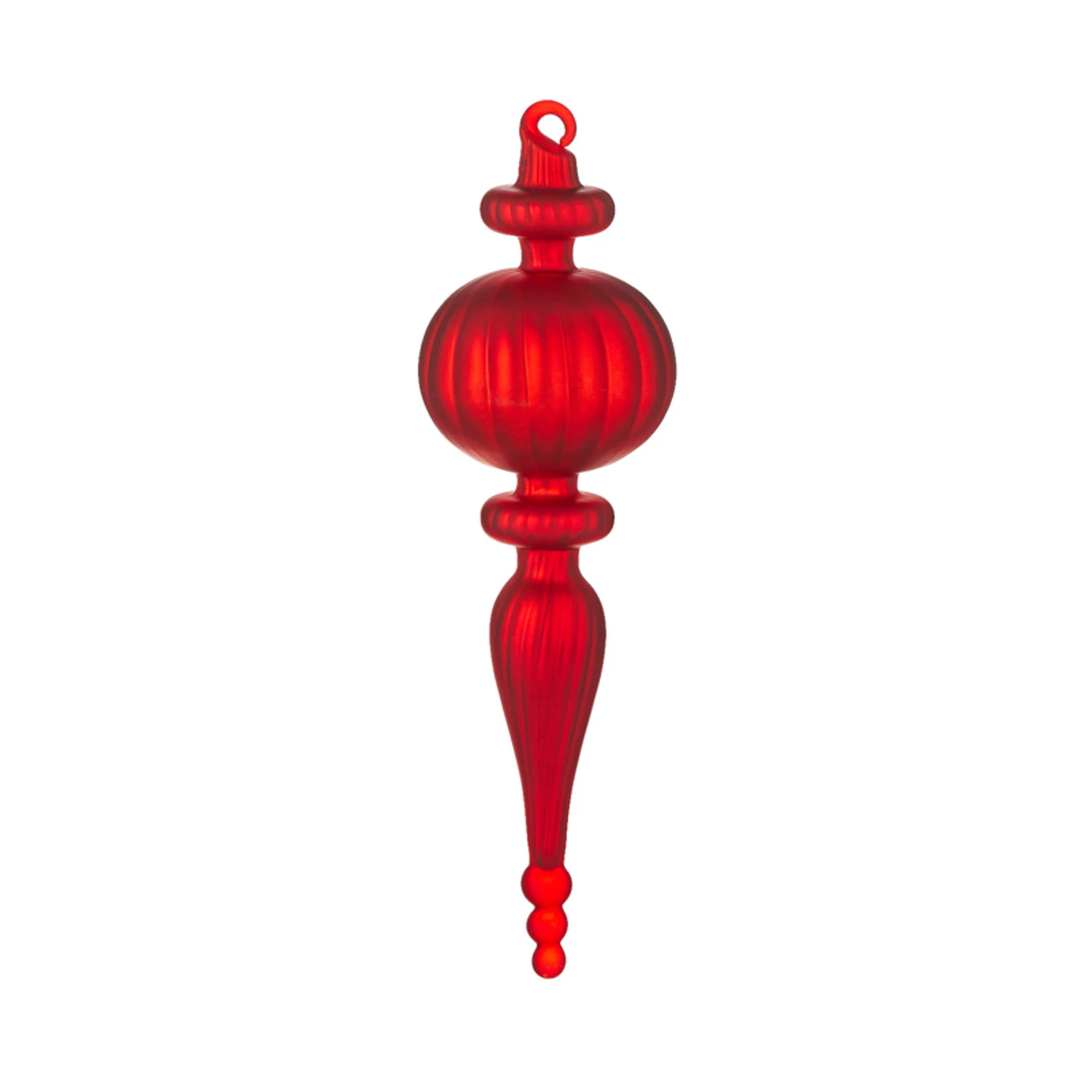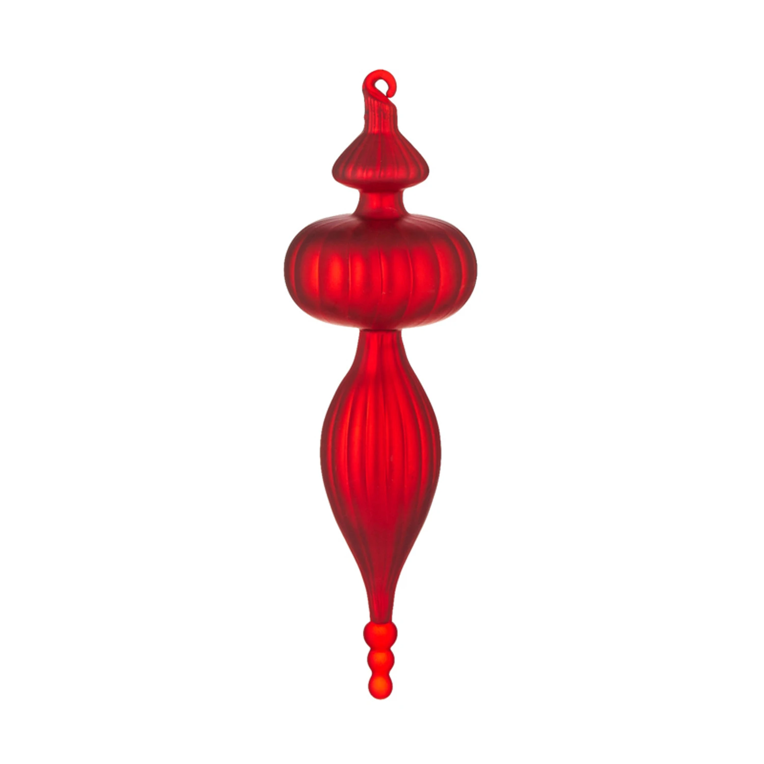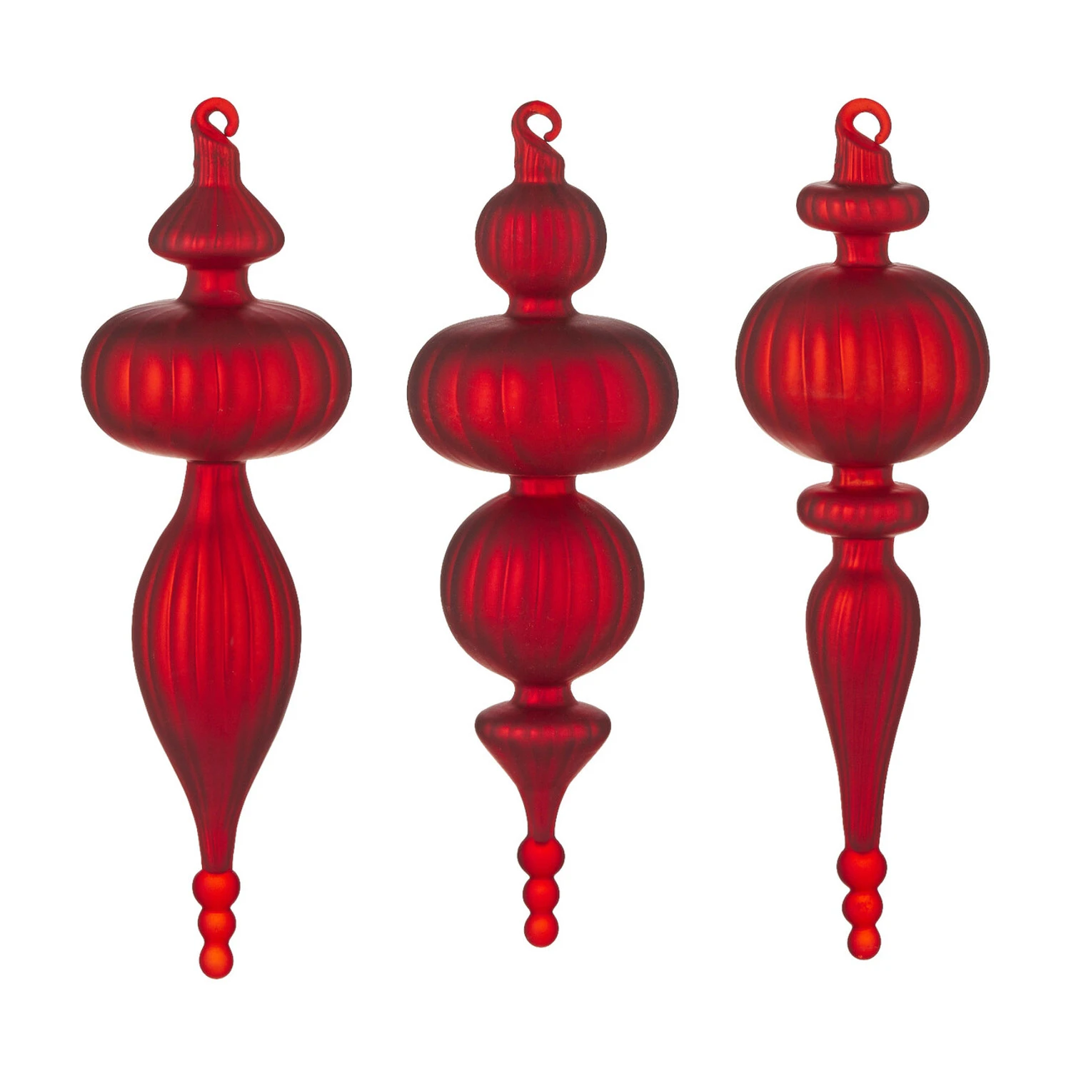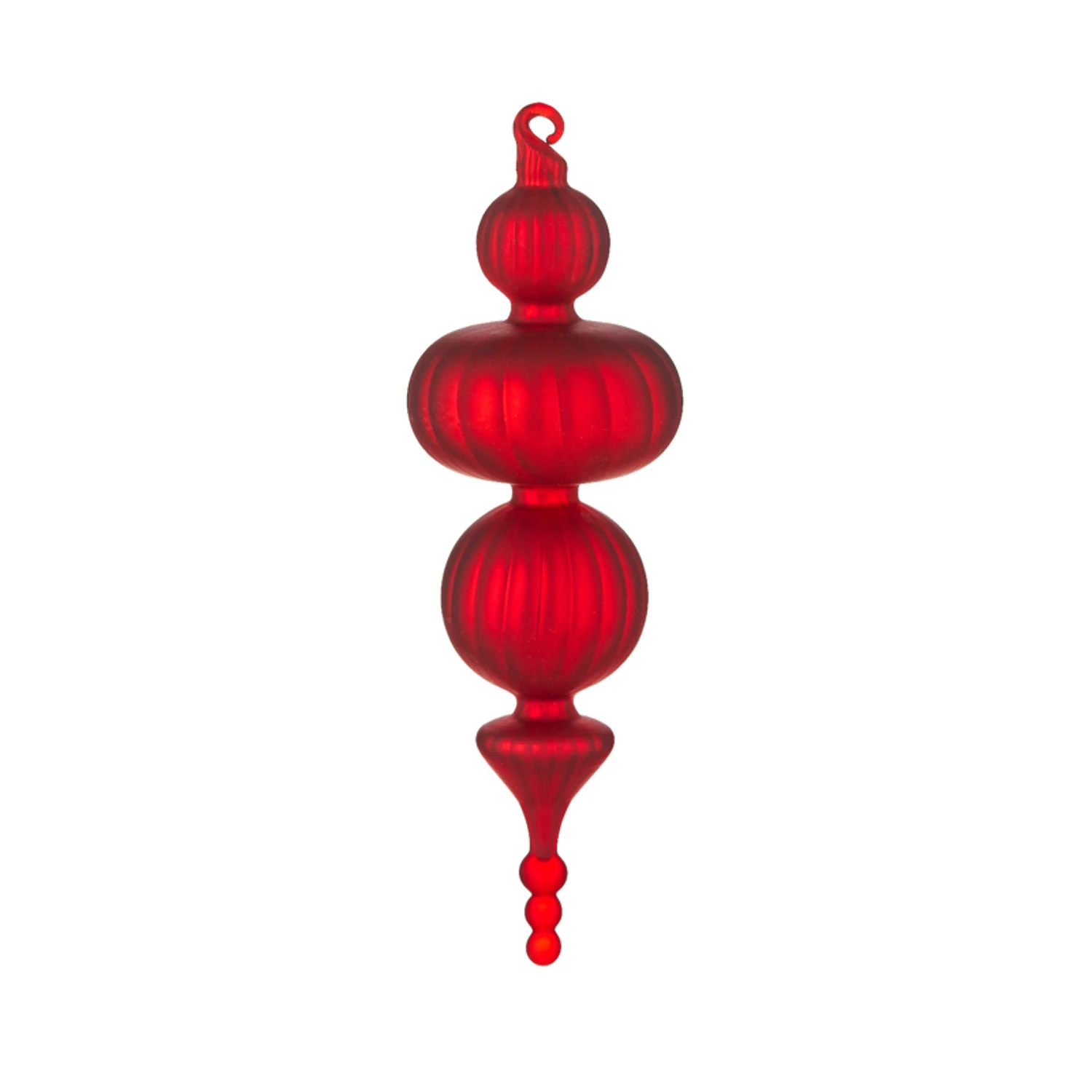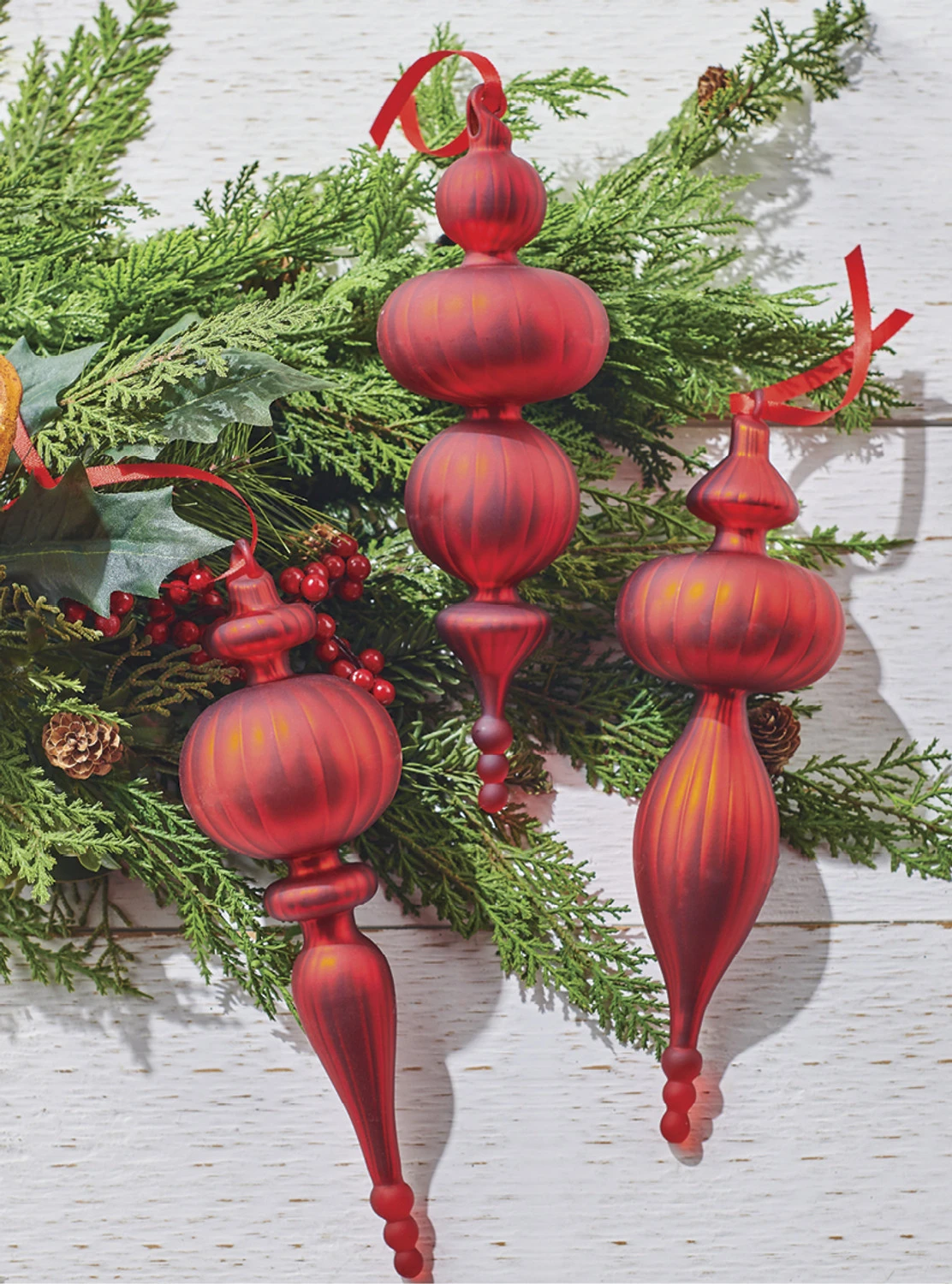 These red velvet finials are sure to bring an elegant touch to your Christmas décor! Each one has that rich matte red color with different shaped finial sections! Each sold individually. Made by Raz Imports. Made of glass. Dimensions: 3″D x 9.5″H. Item #: 4124579