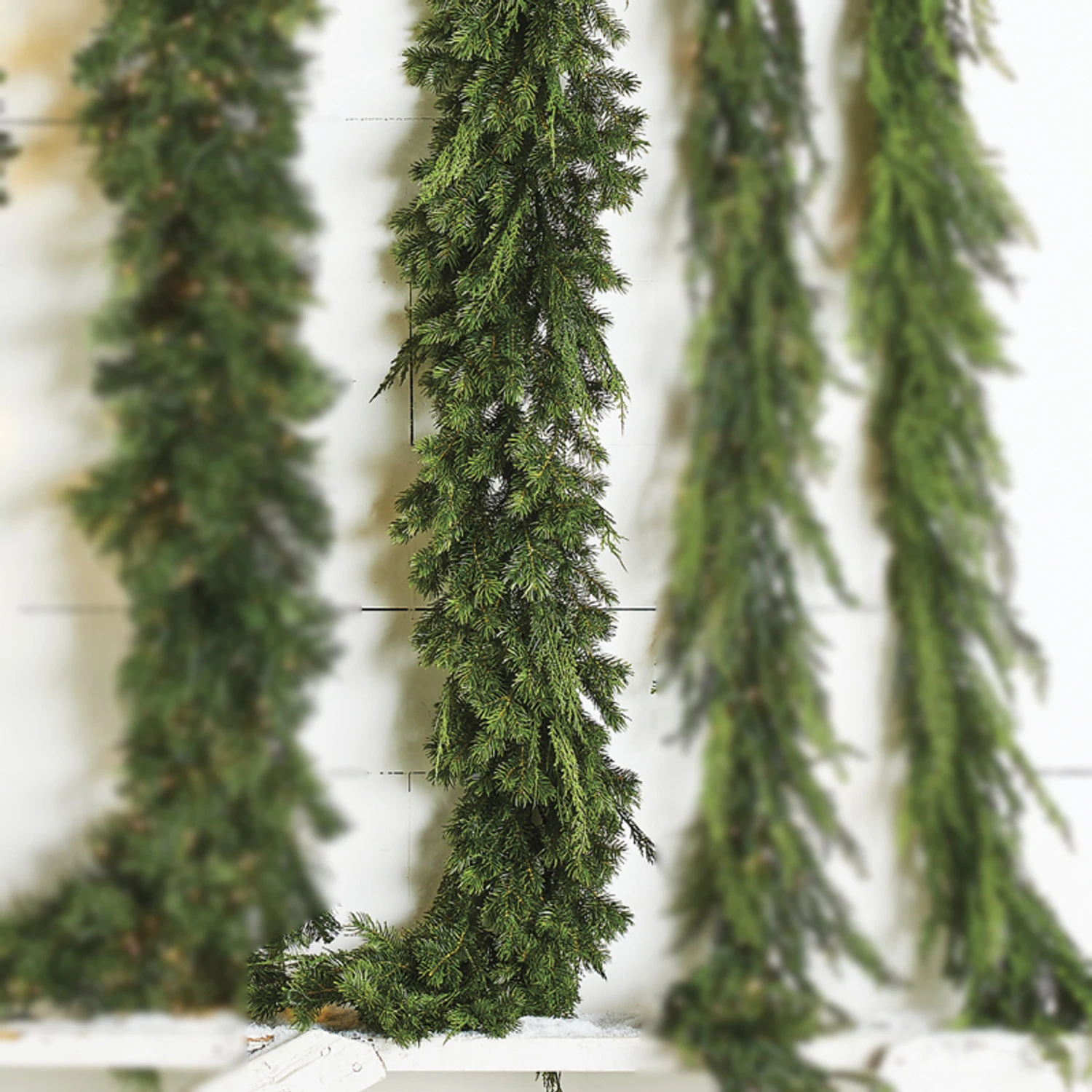 Get your mantle ready for the holidays! This garland features 9 feet of fluffy cedar branches that looks real! Made by Raz Imports. Made of pvc. Dimensions: 9′. Item #: G4152043