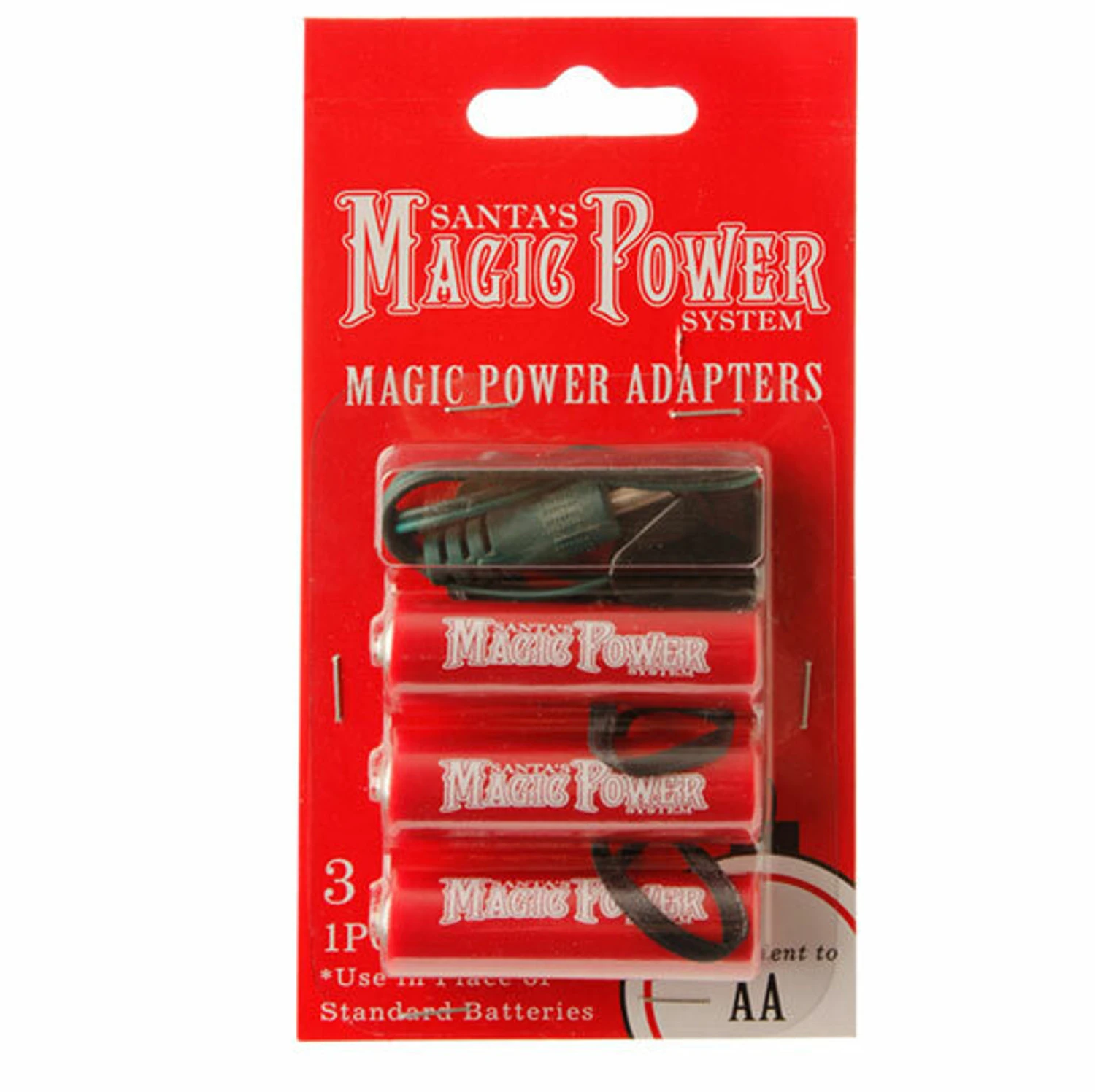 Save money on batteries! The Magic Power Adapter will save you some money this season. The adapter is equivalent to 3 AA batteries and is designed to be used with the Magic Power System, Compatible with most battery packs, this adapter turns battery operated items into plugs saving you on battery costs. Must also purchase 3416169 Power AC/DC Adapter. Made by Raz Imports. Item # 3416165.