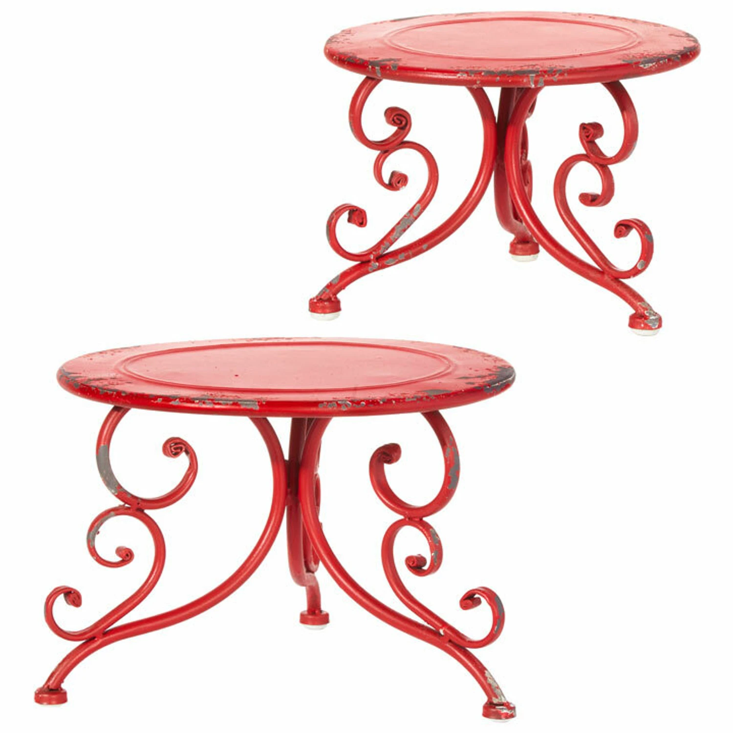 One up your mantle display with these gorgeous risers! Stagger your Christmas candles, give levels to your village, or use them to make your figures taller! You can even use them on your table setting! Sold as a set of 2. Made by Raz Imports. Made of iron. Dimensions: 10” x 6.75” or 12” x 8.25. Item #: 3928899