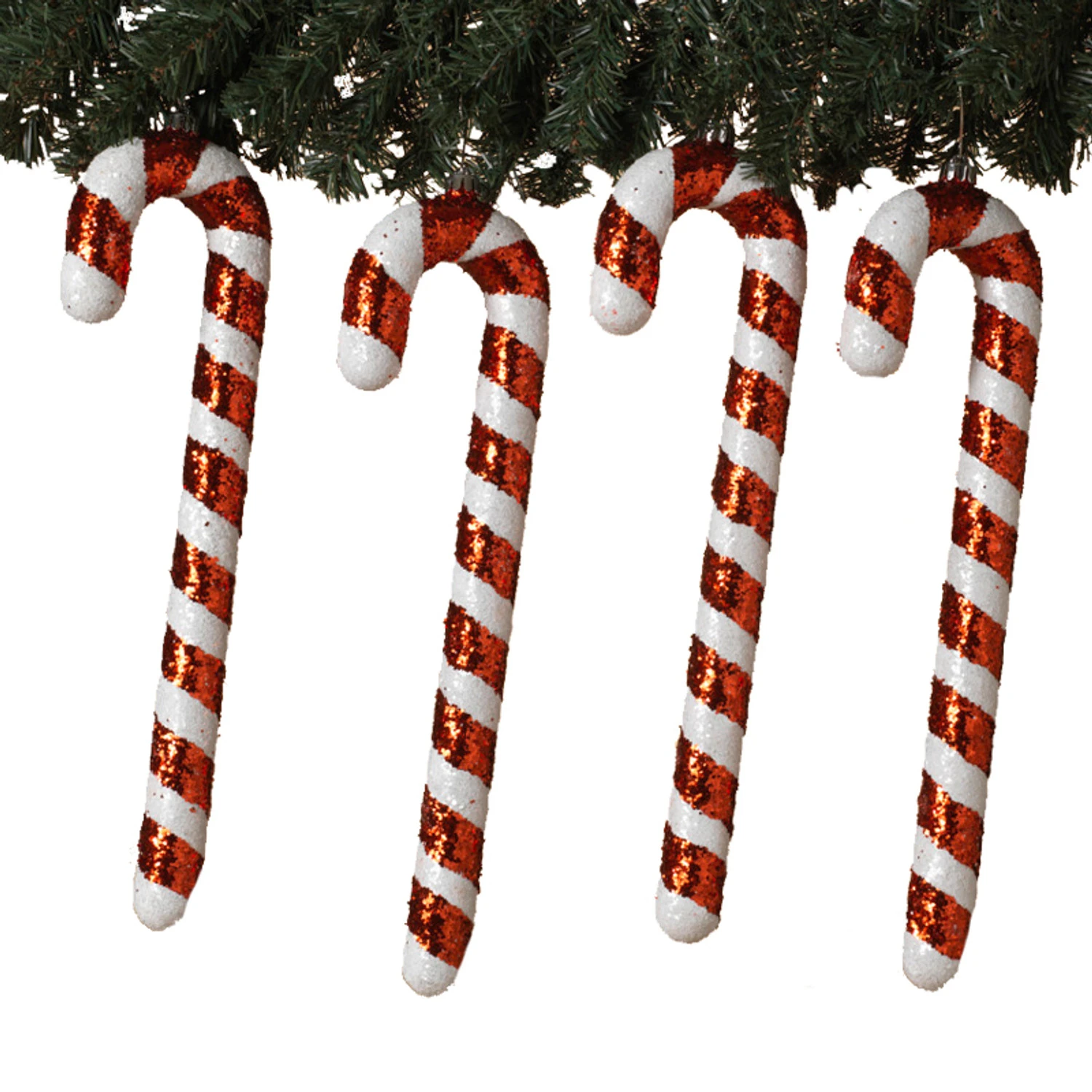 Trim your tree to perfection with these gorgeous ornaments! Each one is covered in white and red glitter! Sold as a set of 4. Made of plastic. Dimensions: 16″. Item #: 2663560