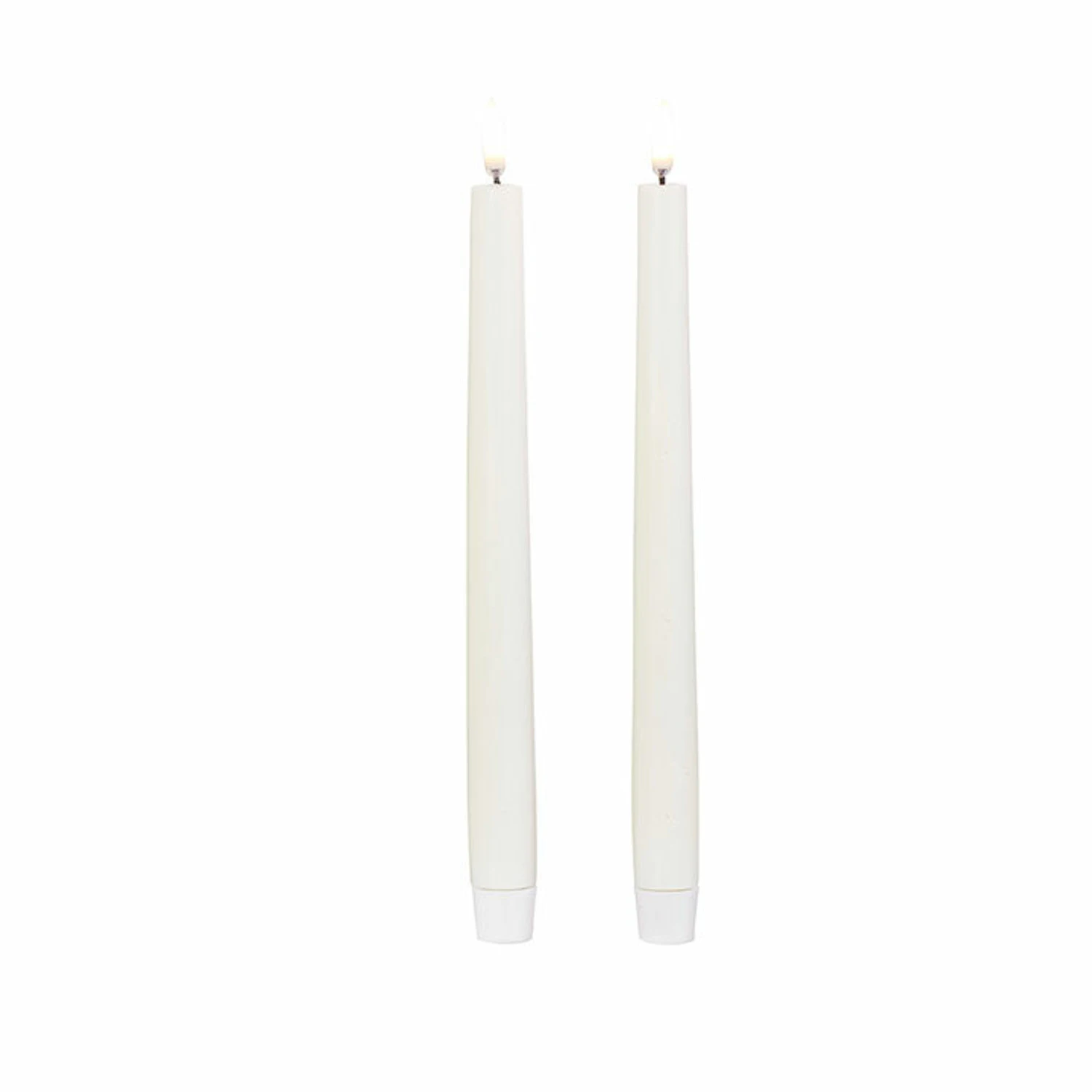 These tapered candles have a new type of flame! The flame has a flickering light inside instead of the moving flame! They are perfect to place in any standard sized taper candle holder! Make your table settings and mantle decor unforgettable! Made by Raz Imports. Requires 2 AAA Batteries, not included.. Remote Ready. 6 Hour Timer Repeats Every 18 Hours. Battery Life Approx 120 Hours. Can Be Used with Remote #4034520. Made of wax. Sold as a set of 2. Dimensions: 11″ x 1″. Item #: 4034513