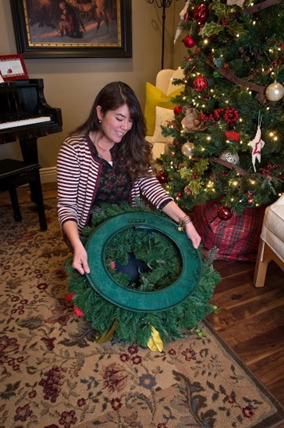 Hanging a wreath on your front door for a fabulous Christmas look should be as easy as 1-2-3 and thanks to this wonderful wreath hanger from Village Lighting, it can be! Preventing dings, scrapes and scratches to your door, this clever hanger fits wreath frames 14″-21″ and fits most 30″ wreaths. Attaches to a wreath or wreath frame with adjustable twisting handles. One year warranty against manufacturer defects. Item # V-11101-DLX. Â