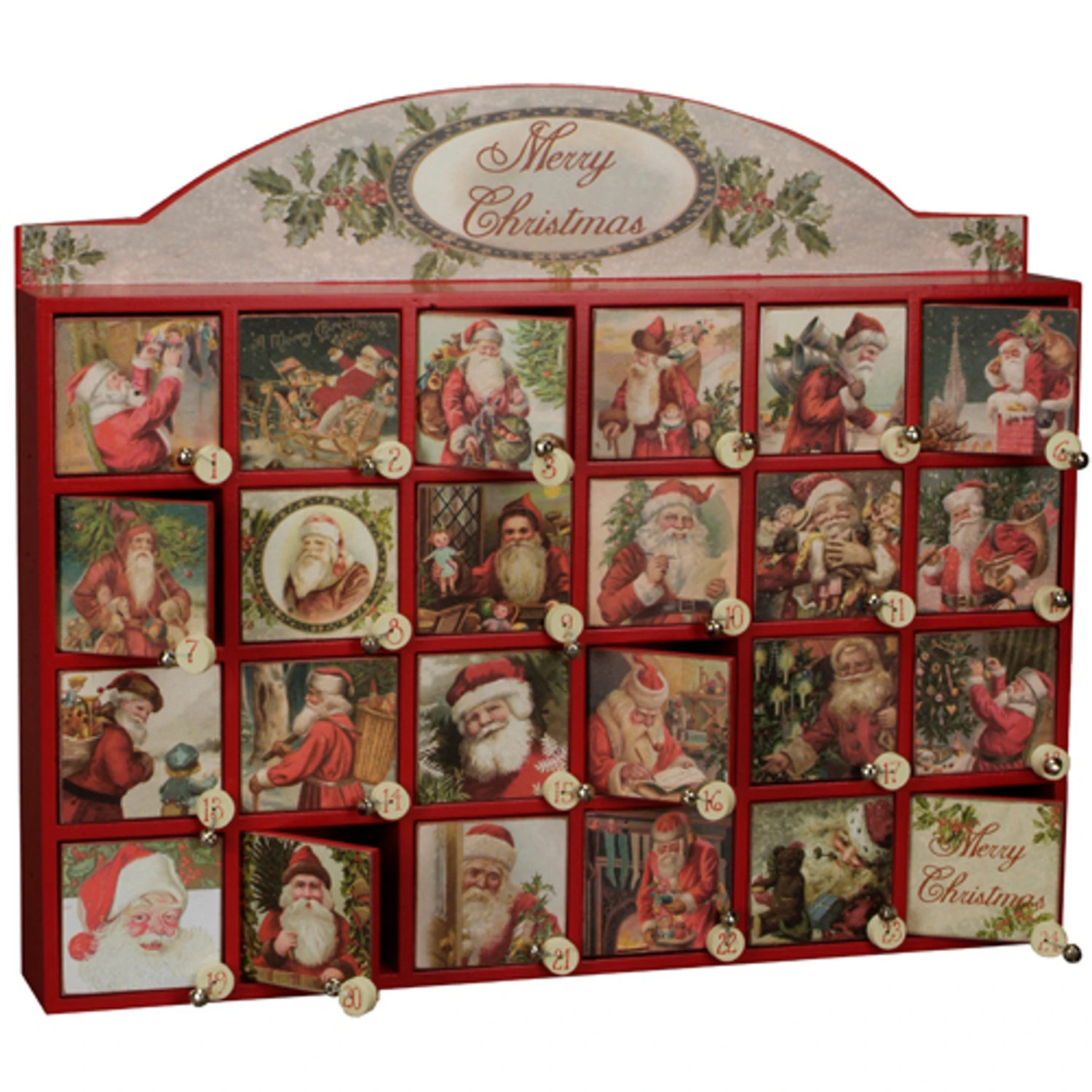If you celebrate advent, you know that advent calendars are hard to come by. What if you could find an advent calendar that was not only available but beautiful? Our beautiful countdown boxes include individual drawers for every day of the month. Made of wood, paper, and metal, each hand crafted box includes a vintage picture and collectively measures 17.13″ x 3.38″ x 14.25″.  Made by Primitives by Kathy. Item number 45207